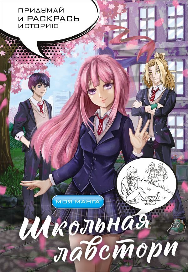 Школьная лавстори: раскраска в стиле манга. Придумай и раскрась историю