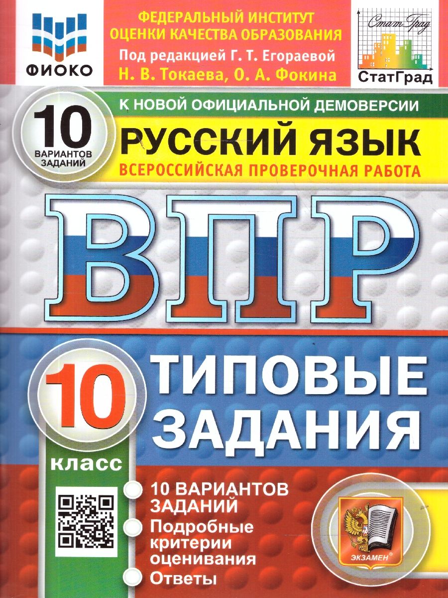 ВПР Русский язык 10 класс. 10 вариантов с ответами. ФГОС Новый