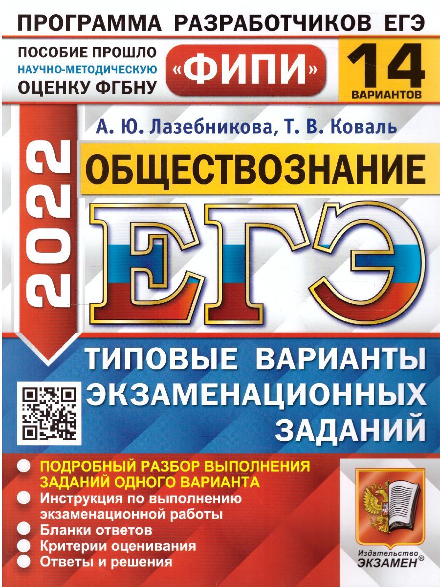 ЕГЭ 2022 Обществознание 14 вариантов ТВЭЗ