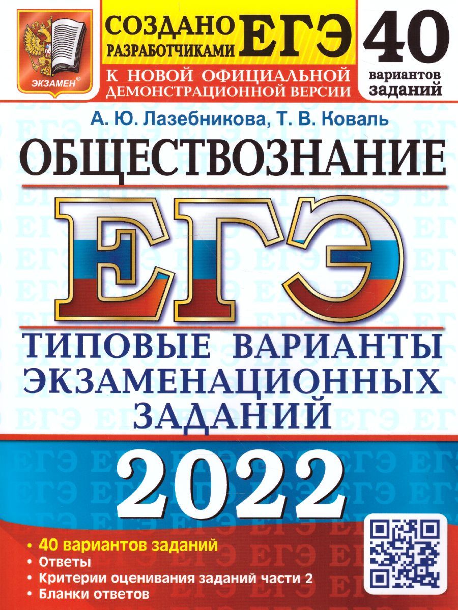 ЕГЭ 2022 Обществознание 40 вариантов ТВЭЗ
