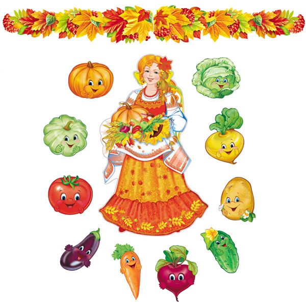 Комплект для оформления интерьера. Сезон урожая (фигурный плакат А2, 10 фигур овощей А4 и гирлянда)