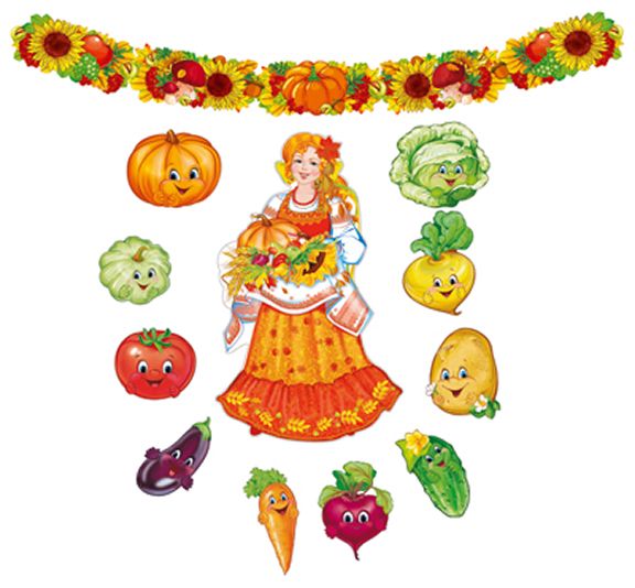 Комплект для оформления интерьера. Сезон урожая (фигурный плакат А2, 10 фигур овощей А4 и гирлянда)
