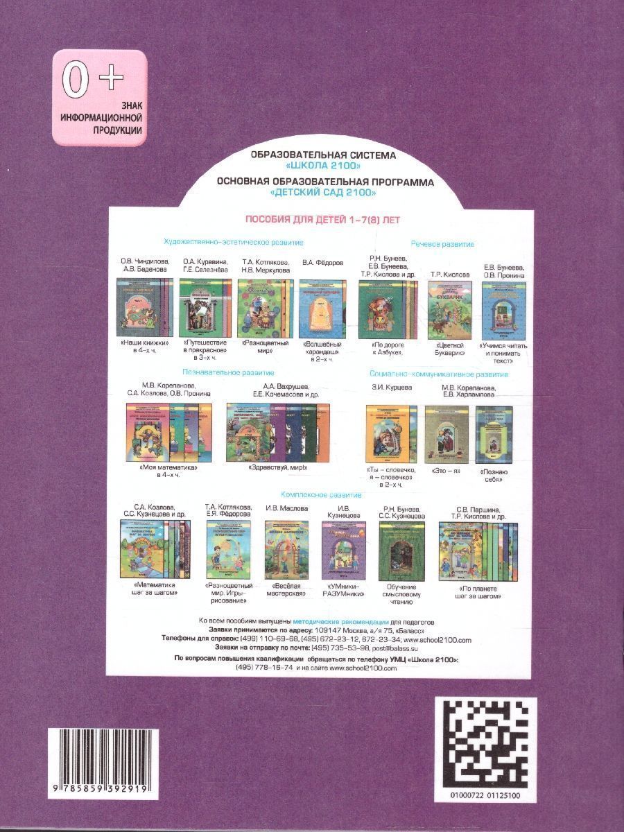Пособие по ознакомлению с окружающим миром "Здравствуй, мир!" для детей 3-4 лет является начальным звеном непрерывного курса "Окружающий мир" и составной частью комплекта пособий для ДОУ, реализующих образовательную программу "Детский сад 2100". Полностью соответствует ФГТ, обеспечивает решение задач образовательных областей "Познание", "Безопасность" и др. Пособие ориентировано на развитие личности ребёнка, его творческих способностей, на формирование целостной картины мира. Может быть использовано для занятий с дошкольниками в детских садах, а также для индивидуальной работы родителей с детьми. Все тексты, включённые в данное пособие, не предназначены для чтения детей, их читают взрослые (педагоги, родители). 2-е издание, переработанное.Характеристики