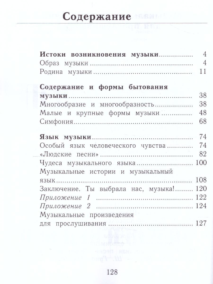 Слышать музыку — значит чувствовать и переживать, совершать открытия, которые заставят ребёнка "исследовать" собственные чувства, подтолкнут к размышлениям об окружающей жизни. Именно эта задача — научить слышать музыку — положена в основу концепции учебника. Первоклассники научатся ориентироваться во многообразии музыкальных жанров, различать характер музыки, выявлять её жанры (песня, танец, марш) как способы передачи состояний человека и природы. Входит в систему учебно-методических комплектов "Начальная школа XXI века". В комплекте с учебником предлагаются рабочая программа, электронная форма учебника (ЭФУ), рабочая тетрадь, нотная хрестоматия и методическое пособие для учителя. Соответствует Федеральному государственному образовательному стандарту начального общего образования.Характеристики