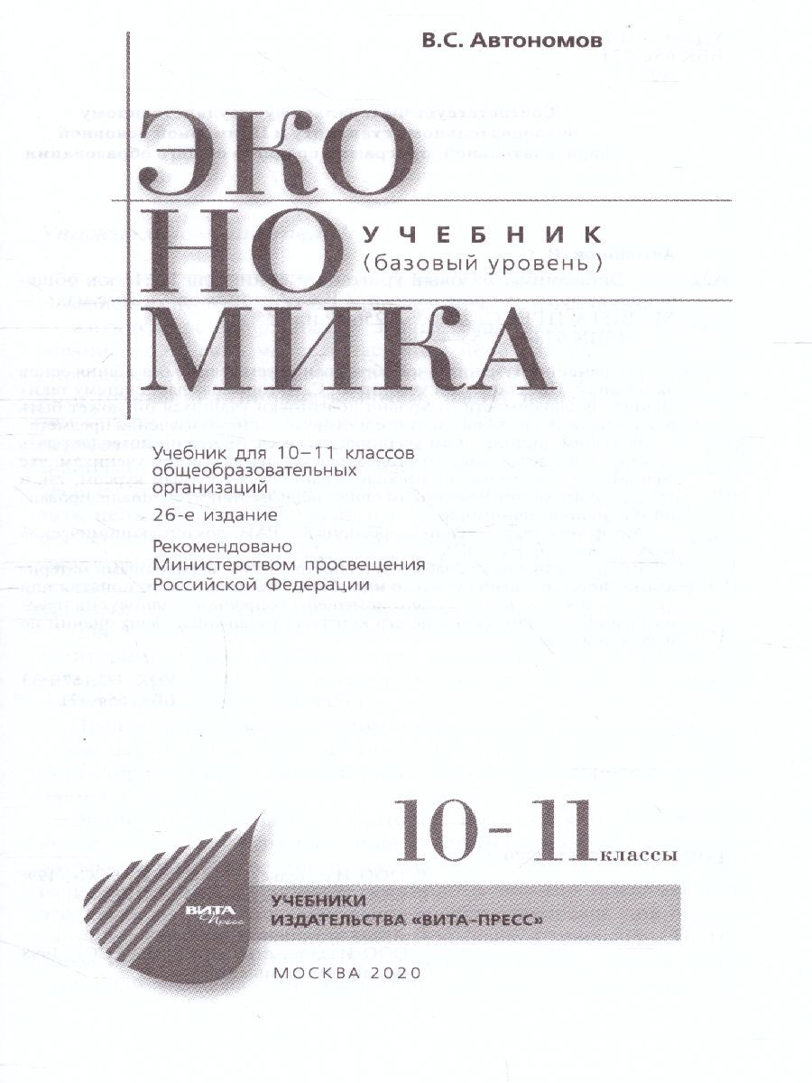 Современное гуманитарное образование немыслимо без знания основ экономики. Предлагаемый учебник В. С. Автономова дает систему таких знаний. В зависимости от уровня подготовки учащихся он может быть рекомендован для одногодичного или двухгодичного изучения предмета. Большим достоинством учебника является то, что он позволяет дать целостное представление об экономической науке как тем ученикам, чье знакомство с экономикой в школе ограничится вводным курсом, так и тем, для кого работа с учебником станет первым этапом специализированного изучения экономики. Автор учебника - член-корреспондент РАН, доктор экономических наук, профессор НИУ ВШЭ. Все главы учебника снабжены иллюстрациями, справочными материалами, поясняющими суть того или иного экономического понятия или явления. В конце каждой главы помещены вопросы и задания: они предназначены для самостоятельного контроля учащимися своих знаний по изученной теме. Рекомендовано Министерством просвещения Российской Федерации.Характеристики