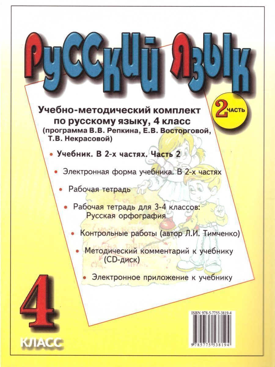 Русский язык 4 класс. Учебник. Комплект в 2-х частях. УМК "Русский язык. Репкин В.В.(1-4)(система Эльконина-Давыдова)". ФГОС. Учебник для 4 класса начальной школы. По системе Д.Б. Эльконина - В.В. Давыдова. Учебники служат не только источником подлежащей усвоению информации, но и основным средством формирования у учащихся стремления к учебной деятельности, представляя собой ее динамическую модель. Имеют четкую структуру и специфический методический аппарат, соответствующий основным функциям учебника в системе развивающего образования. Каждый параграф включает следующие структурные компоненты: модель проблемной ситуации; модель процесса решения поставленной задачи; блок упражнений; контрольные задания; раздел "Для любознательных", содержащий материал для факультативного изучения.Характеристики