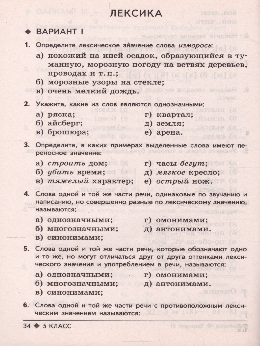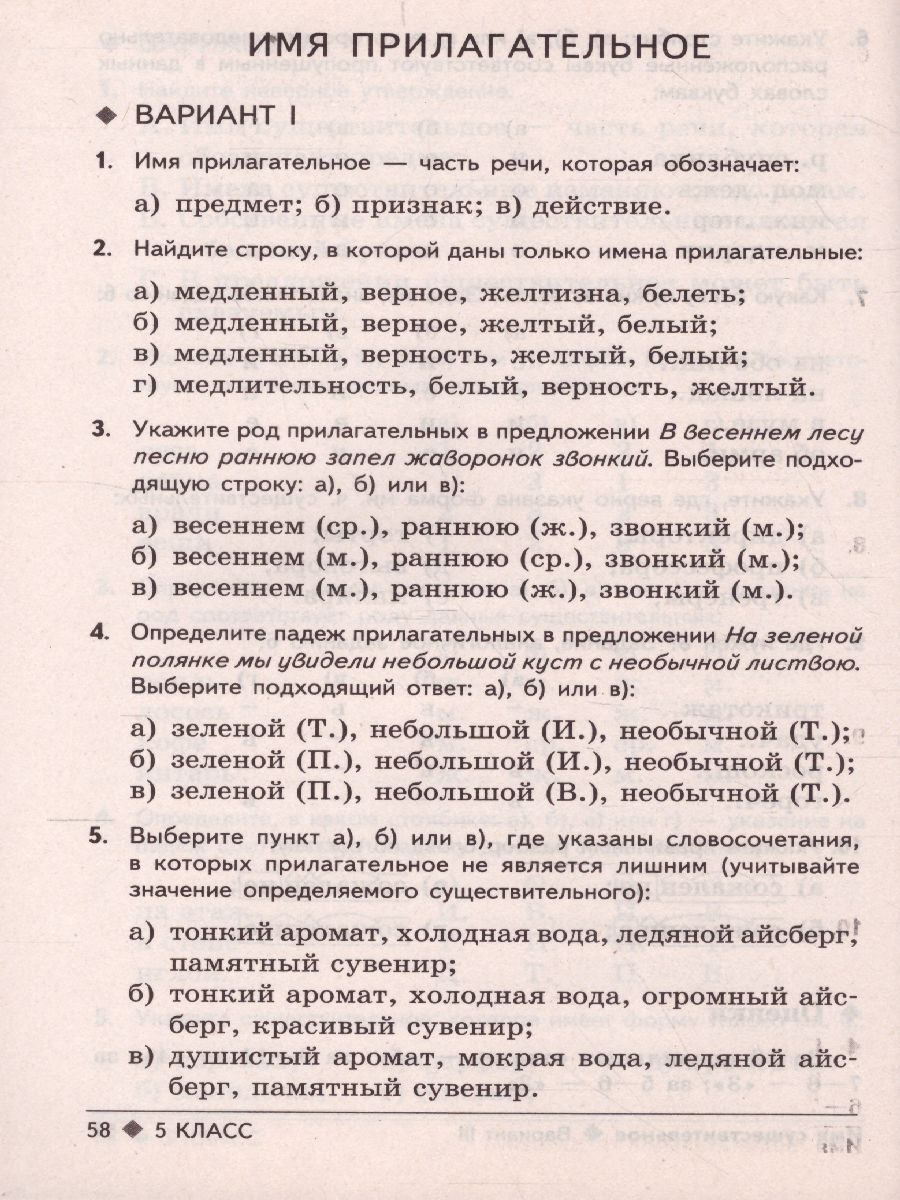 Тестовые задания по Русскому языку 5 класс