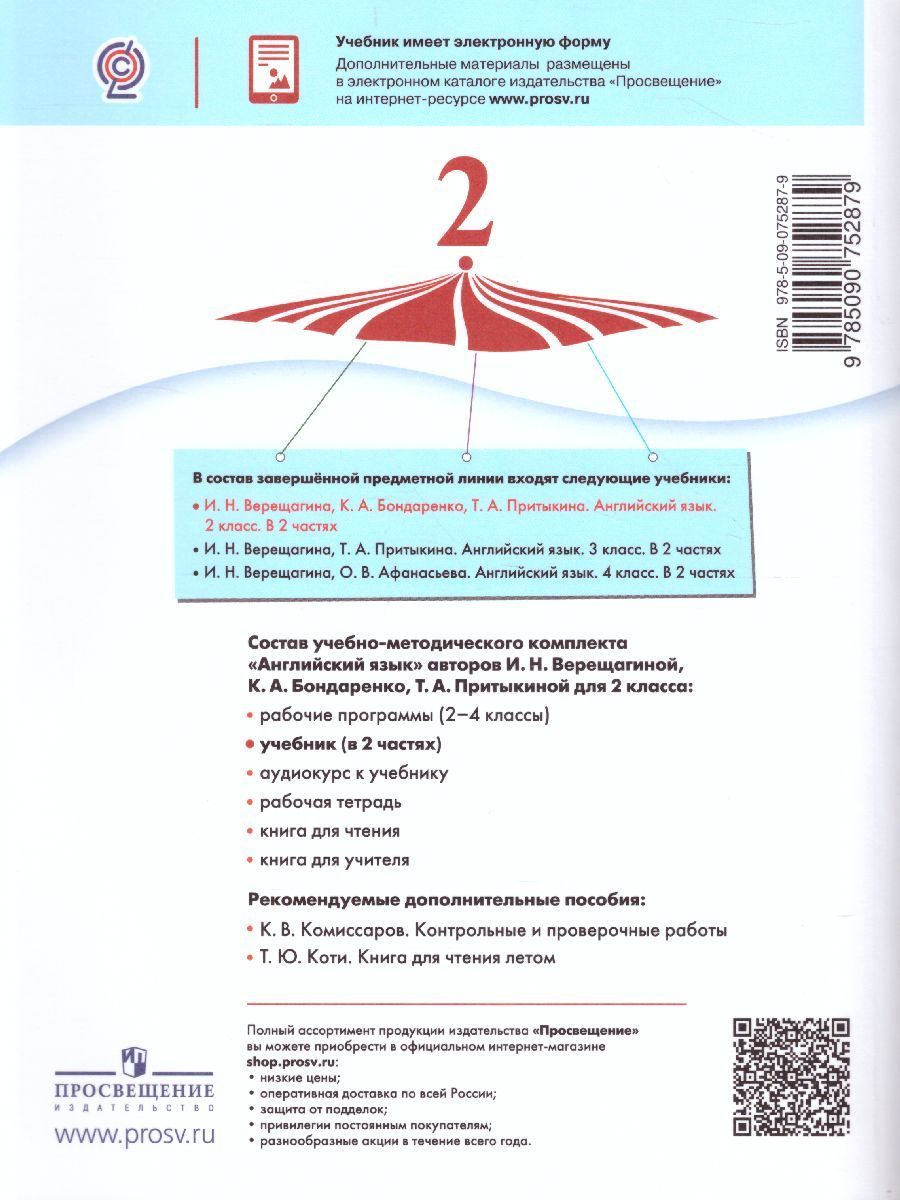Учебник является основным компонентом учебно-методического комплекта серии «Английский язык» для 2 класса и сочетает в себе как новые тенденции в преподавании языка, так и традиционные, классическая методы, с помощью которых язык изучается глубоко и основательно, а все навыки и умения получают постепенное развитие. Материал учебника поделён на разделы, содержит множество оригинальных текстов и упражнений и полностью соответствует Федеральному государственному образовательному стандарту начального образования. Получил положительные заключения по итогам научной, педагогической и общественной экспертиз.Характеристики