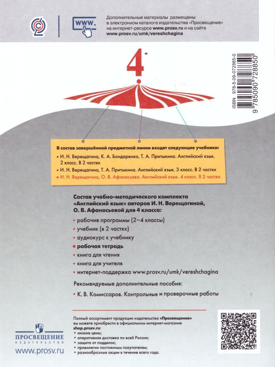 Рабочая тетрадь является составной частью учебно-методических комплекта для 4 класса (4-й год обучения) и предназначена для учащихся общеобразовательных учреждений и школ с углублённым изучением английского языка. Тетрадь содержит разнообразные задания и упражнения для самостоятельной работы учащихся, способствующие лучшему усвоению, закреплению и повторению лексико-грамматического материала учебника.Характеристики