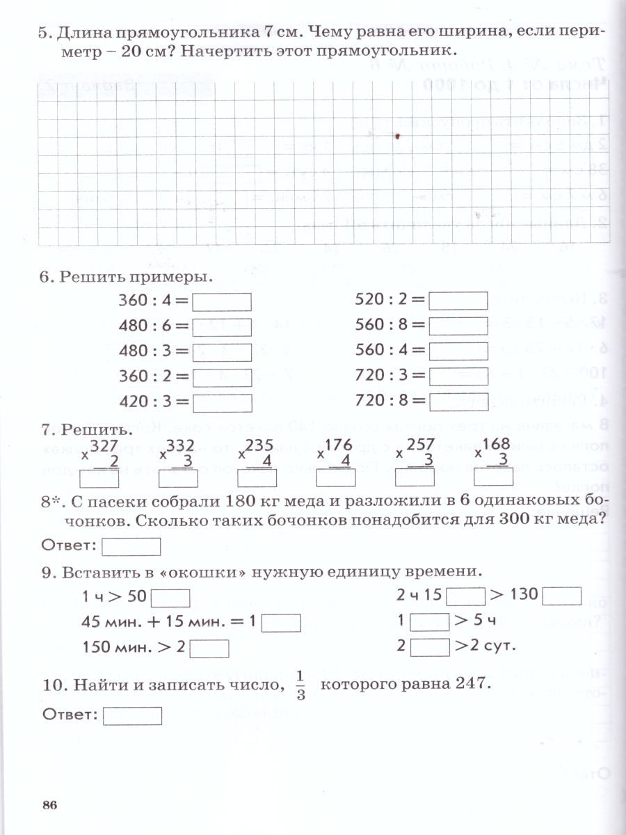 Зачетная тетрадь. Тематический контроль. Математика 3 класс. ФГОС