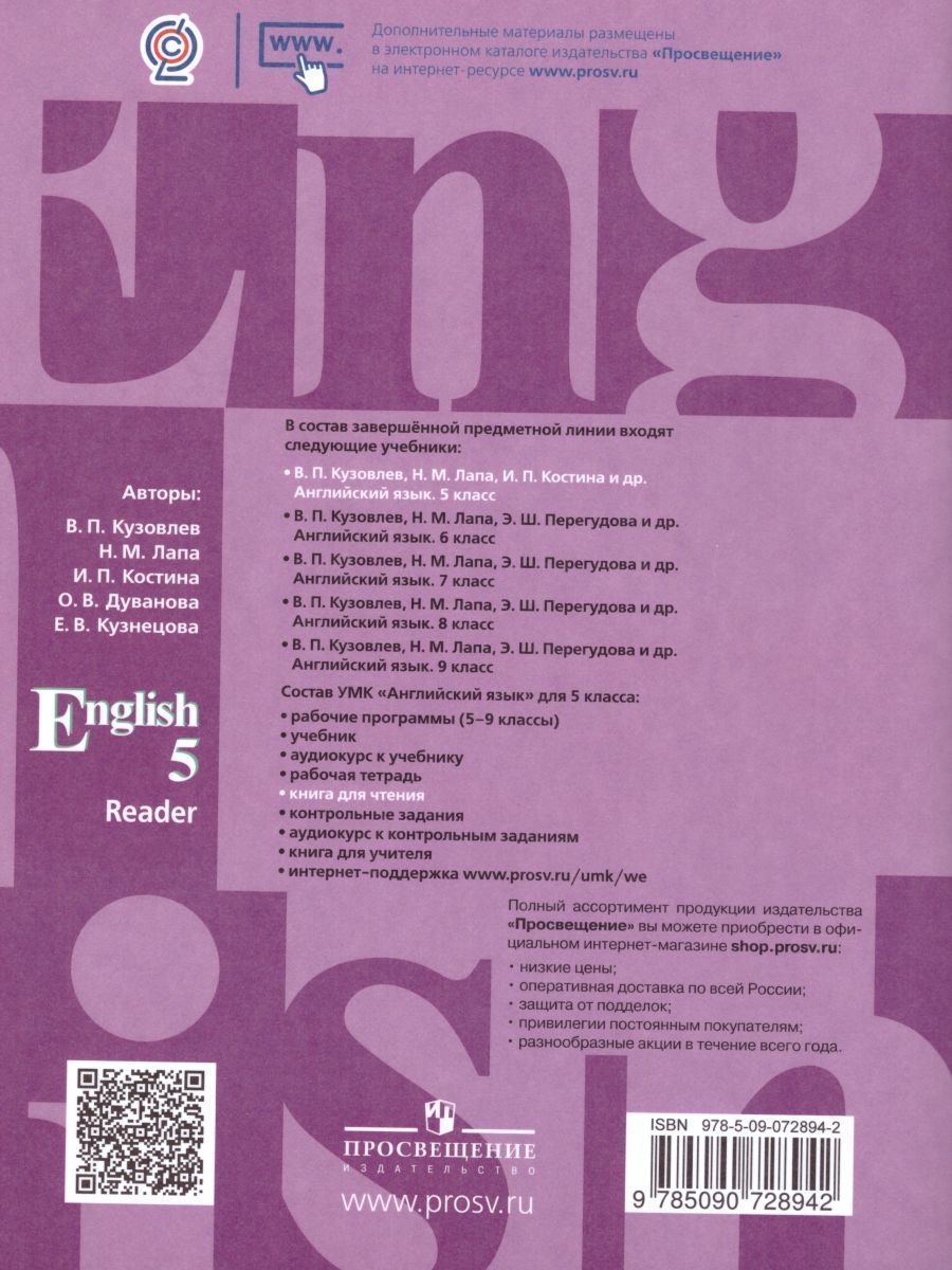 Английский язык 5 класс. English 5: Reader. Книга для чтения. ФГОС
