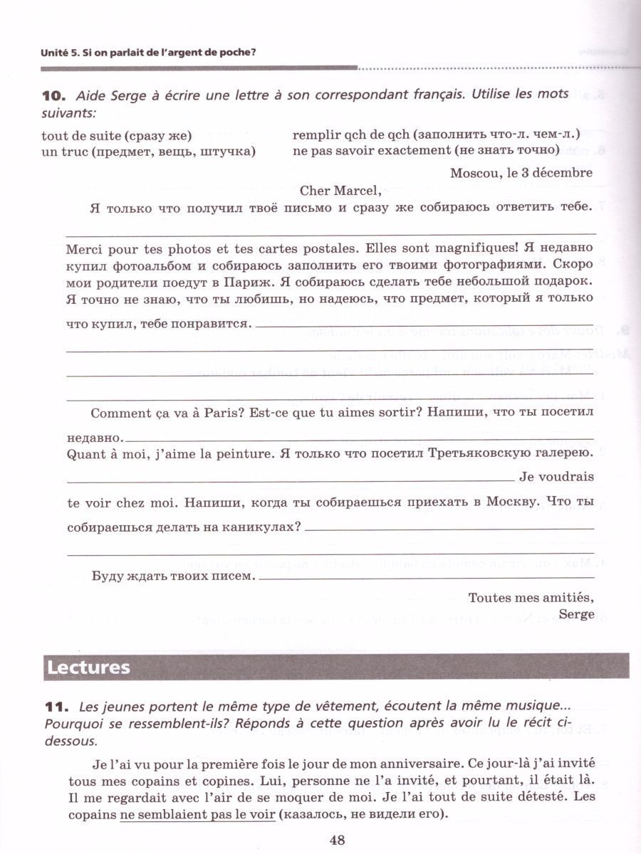 Французский язык как второй иностранный 7 класс. Рабочая тетрадь (с контрольными работами и текстами для чтения)