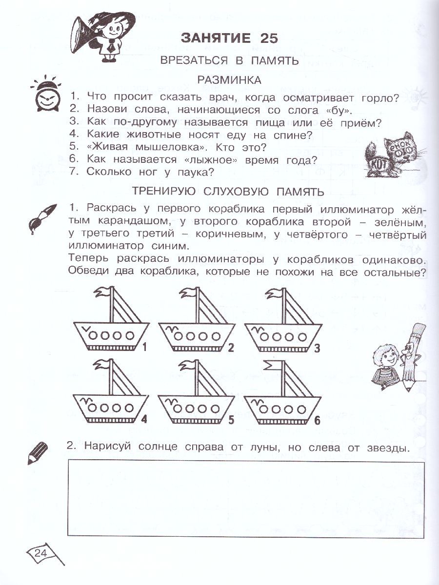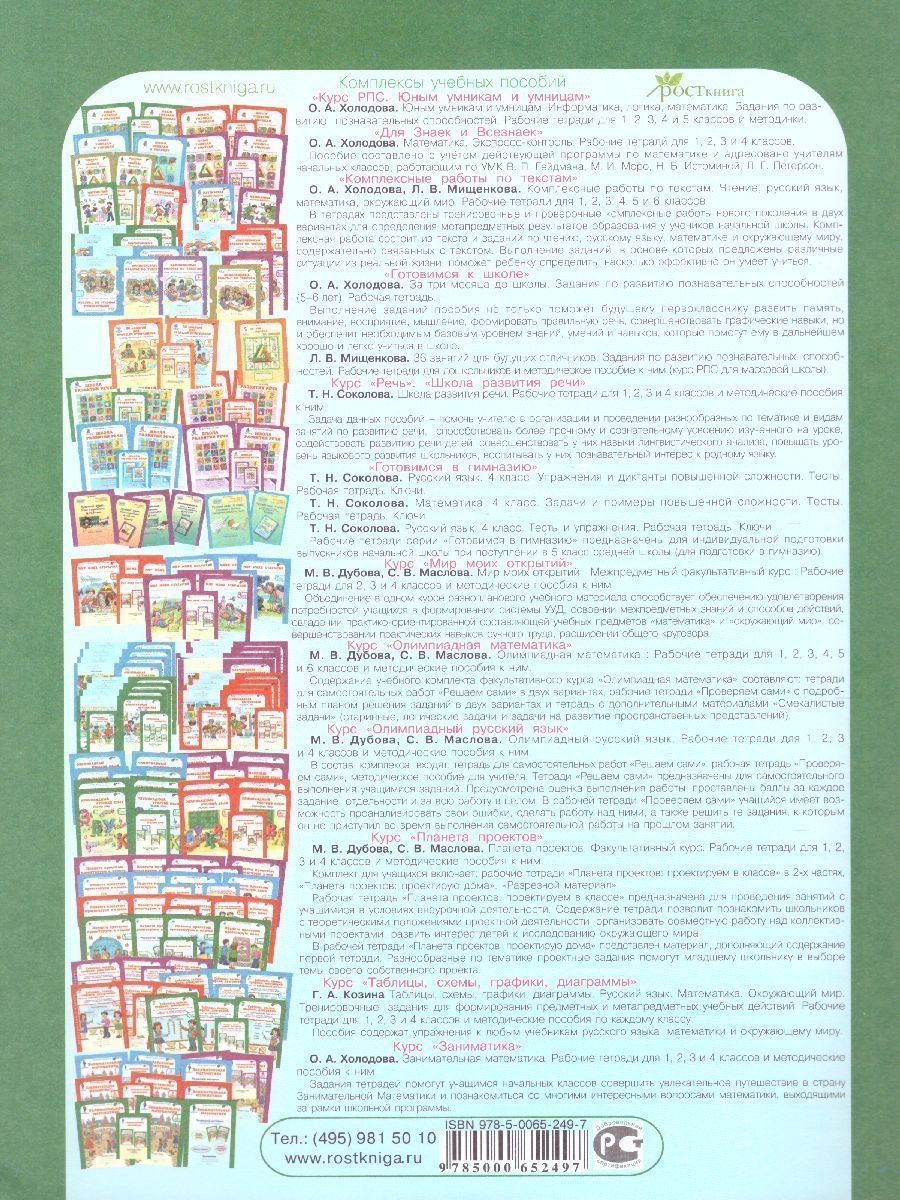 Данное пособие представляет систему специально разработанных заданий по развитию познавательных способностей детей 6-7 лет. Оно рассчитано на программу 1 класса общеобразовательной школы. Упражнения, выполненные в определенной последовательности, обеспечивают комплексное развития различных видов памяти, внимания, развивают наблюдательность, воображение; способствует развитию сенсорной и двигательной сфер ребенка, формируют нестандартное мышление. Задания, разработанные в системе, могут быть использованы на уроках использованы на уроках математики, информатики, логики. Пособие поможет также воспитателям групп продленного дня при организации свободного времени учащихся и руководителям кружковой работы при составлении заданий игрового и творческого характера. В пособии использована авторская система, разработанная кандидатом педагогических наук Н. К. Винокуровой. Рабочие тетради апробированы и успешно применяются в школах различного уровня. Данный курс является общественно признанной авторской методикой. ПособиеХарактеристики