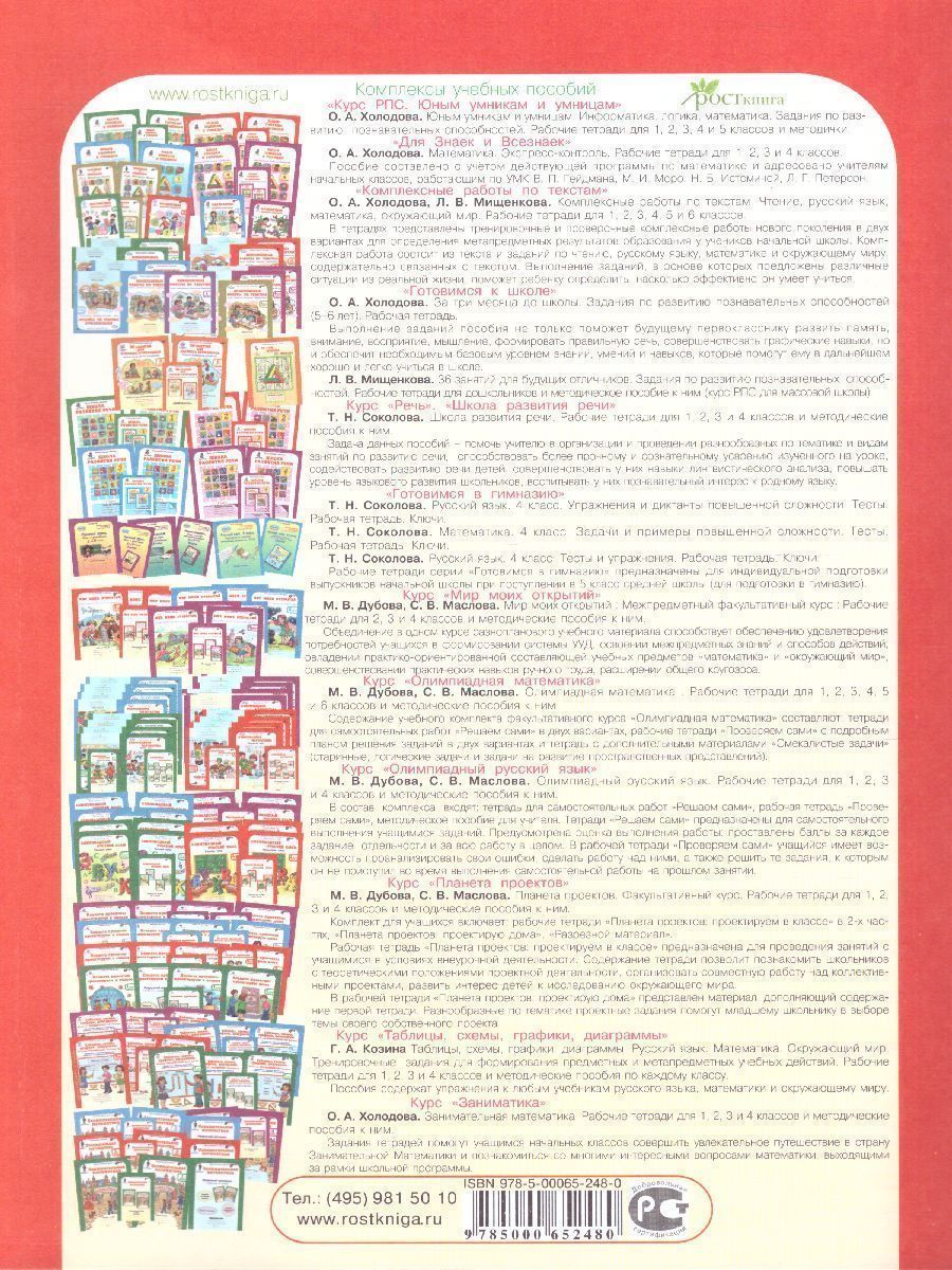 Данное пособие продолжает систему работы по развитию познавательных способностей детей. Оно ориентировано на детей 7-8 лет и помогает им освоить программу 2 класса общеобразовательной школы. Упражнения, выполненные в определённой последовательности, обеспечивают комплексное развитие различных видов памяти, внимания, развивают наблюдательность, воображение; способствуют развитию сенсорной и двигательной сфер ребёнка, формируют нестандартное мышление. Задания, разработанные в системе, могут быть использованы на уроках математики, информатики, логики. Пособие поможет также педагогам групп продлённого дня при организации свободного времени учащихся и руководителям кружковой работы при составлении заданий игрового и творческого характера. Данный курс является общественно признанной авторской методикой. Рабочие тетради апробированы и по ним успешно занимаются в школах различного уровня. Пособие соответствует федеральному государственному образовательному стандарту начального общего образования (ФГОС второго поколенХарактеристики