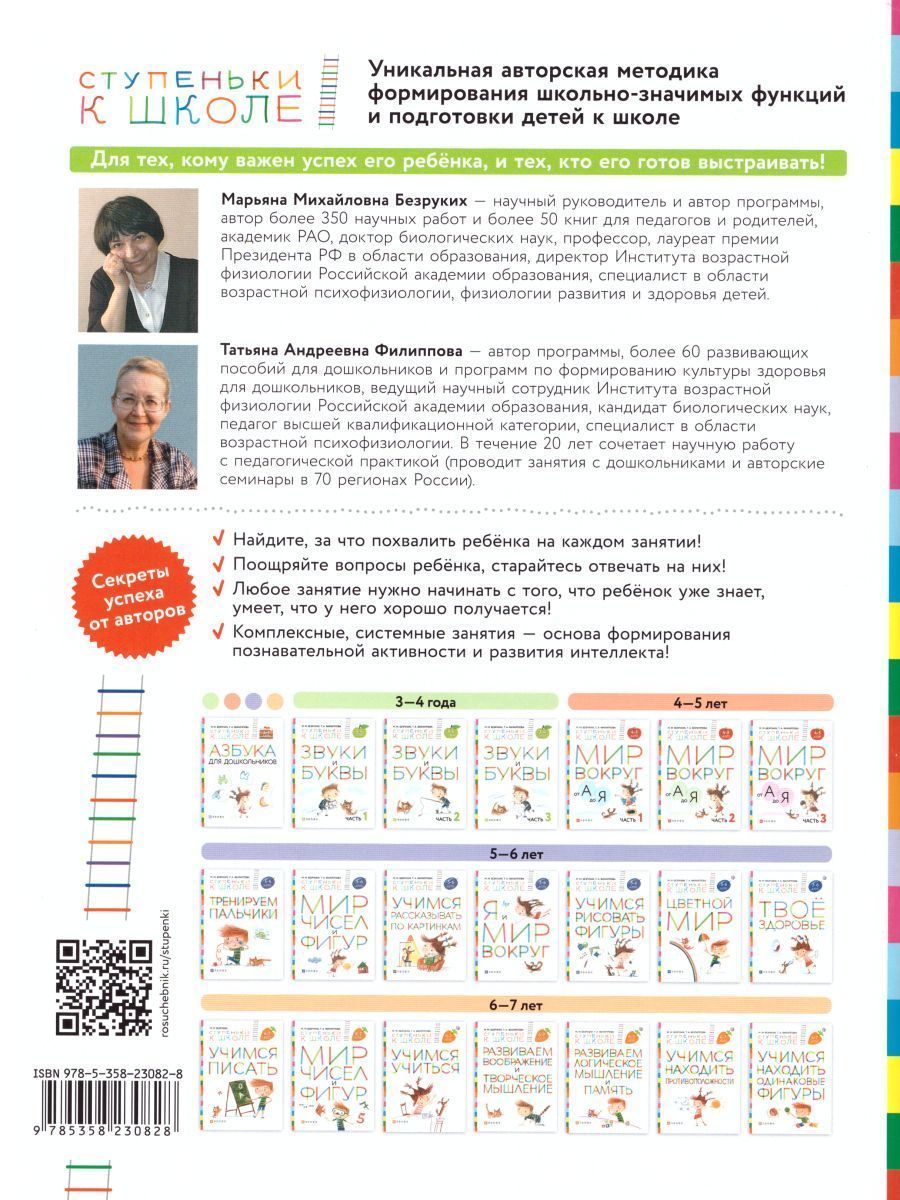 Авторы комплекта "Ступеньки к школе" М. М. Безруких, академик Российской академии образования, директор Института возрастной физиологии РАО, и Т. А. Филиппова, ведущий научный сотрудник института, кандидат биологических наук, предлагают 14 тетрадей и книг...Характеристики