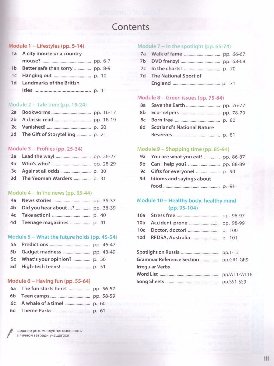 Учебно-методический комплект "Английский в фокусе. 7 класс" предназначен для учащихся 7 класса, продолжающих изучение английского языка в основной общеобразовательной школе. Материал создан интернациональным авторским коллективом: российским издательством "Просвещение" и британским издательством-партнёром Express Publishing (Ю.Е. Ваулина, Д. Дули, О. Е. Подоляко, В. Эванс). Учебник рассчитан на 3 часа в неделю в общеобразовательных организациях. Имеет четкую модульную структуру: 10 тематических модулей, раздел аутентичной информации о России, грамматический справочник на русском языке, а также многочисленные приложения, такие как неправильные глаголы, географические названия и многое другое. Учебник характеризуется тем, что ученики знакомятся с рациональными приемами изучения иностранного языка (Study Skills) и используют английский язык как средство изучения других дисциплин. УМК состоит из обширного количества разнообразных компонентов, в т.ч. мультимедийных: учебник, рабочая тетрадь, рабочая программа 5-9 (на сайте), аудиокурс (на сайте), книга для учителя, языковой портфель, книга для чтения ("Питер Пэн"), аудиокурс к книге для чтения (на сайте), тренировочные упражнения в формате ОГЭ.Характеристики