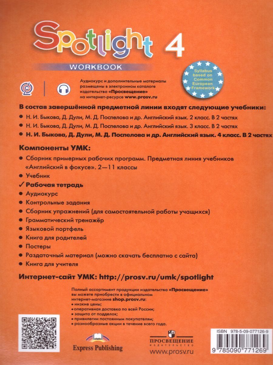 Английский в фокусе 4 класс. Spotlight. Рабочая тетрадь