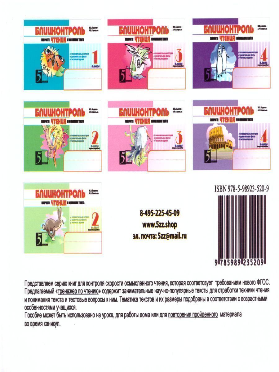 Блицконтроль чтения и понимания текста 4 класс. Часть 2 А5