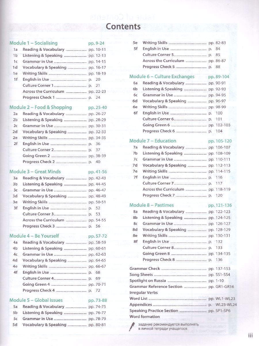 Учебник является центральным элементом учебно-методического комплекта серии «Английский в фокусе» для учащихся 8 класса общеобразовательных организаций. Учебник получил положительные заключения по итогам научной, педагогической и общественной экспертиз на соответствие Федеральному государственному образовательному стандарту основного общего образования. Особенности УМК «Английский в фокусе»: — модульное построение учебника — всестороннее развитие языковых умений — задания, соответствующие требованиям международных экзаменов — аутентичный материал о России — задания для подготовки к ОГЭХарактеристики