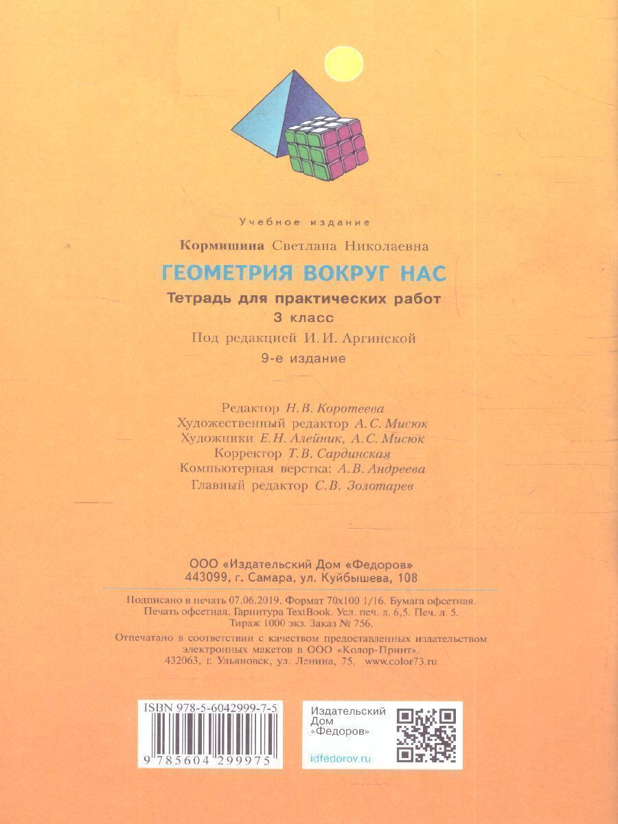 Предлагаемая тетрадь содержит практические работы по геометрии для учащихся 3 класса. При их выполнении повторяются и закрепляются знания и навыки, связанные с изученными геометрическими объектами и операциями с ними. Имеются в виду фигуры и их взаимное расположение, геометрические величины, их сравнение и измерение, а также конструирование. Тетрадь в первую очередь предназначена для детей, обучающихся по системе Л.В. Занкова, ее можно рассматривать как дополнение к учебнику И.И. Аргинской и Е.И. Ивановской "Математика. 3 класс". Вместе с тем она может успешно использоваться при работе по другим учебникам математики для начальной школы.Характеристики