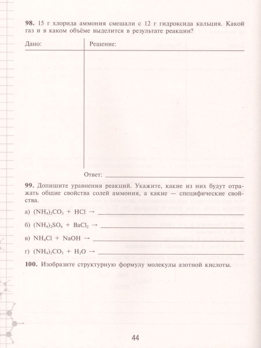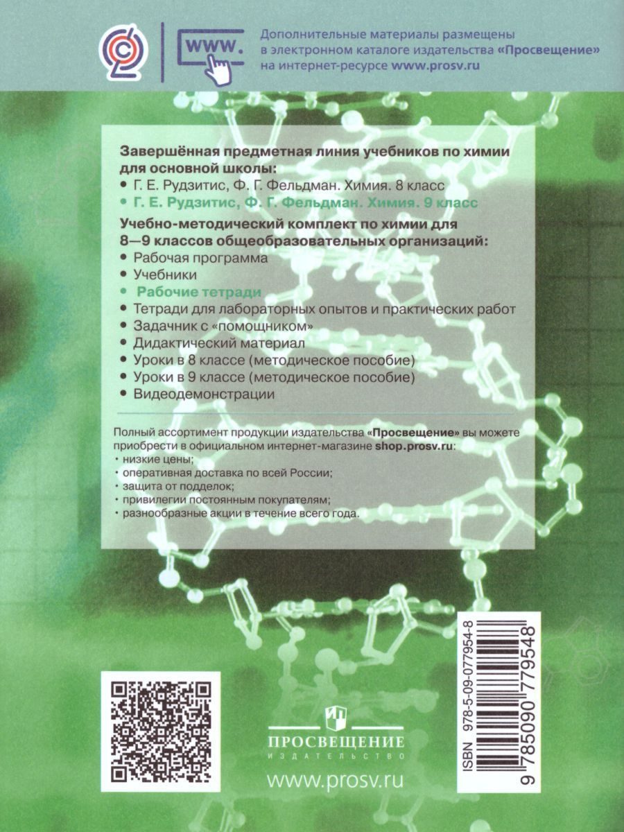Рабочая тетрадь для учащихся входит в линию учебно-методических комплектов по химии Г. Е. Рудзитиса и Ф. Г. Фельдмана. Рабочая тетрадь может использоваться для выполнения домашних заданий, закрепления пройденного материала, самостоятельной проверки знаний и подготовки к контрольным работам. Звёздочкой обозначены задания повышенной сложности; для выполнения таких заданий нужно воспользоваться дополнительной информацией.Характеристики