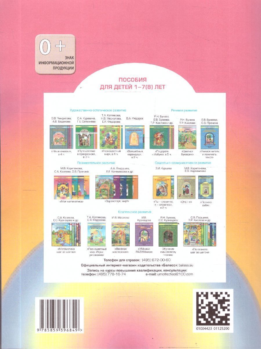 Пособие «Моя математика» для детей 4-5 лет является начальным звеном непрерывного курса «Математика» в Образовательной системе «Школа 2100» (авторы С.А. Козлова и др.). Обеспечивает решение задач ФГТ и ФГОС дошкольного образования. . .Пособие предназначено для работы в средней группе дошкольных образовательных организаций, оно направлено на развитие способностей и математических представлении детей, а также развивает мелкую моторику руки. . .Все тексты, включённые в данное пособие, не предназначены для чтения детей, их читают взрослые (педагоги, родители).Характеристики