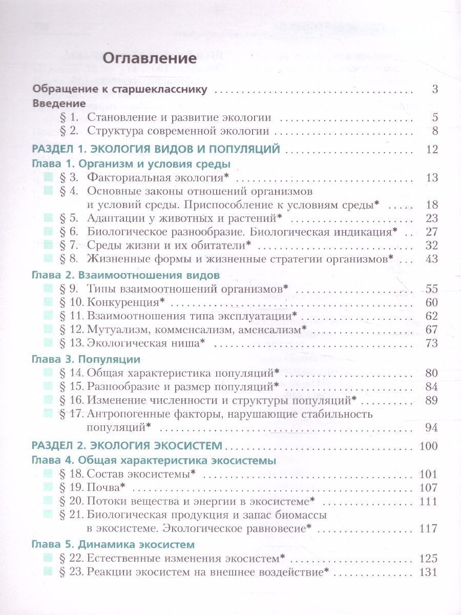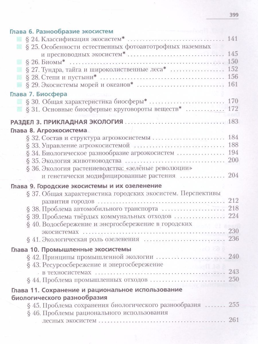Учебник входит в систему учебно-методических комплектов «Алгоритм успеха». В нём рассмотрены вопросы общей экологии (экология видов, популяций, экосистем и биосферы), прикладной экологии (сельскохозяйственная, городская, промышленная экология; вопросы охраны природы, механизмы рационального природопользования) и социальной экологии (концепция устойчивого развития, глобальные экологические проблемы, международное сотрудничество в деле сохранения окружающей среды и формирование нового экологического менталитета населения). Большинство глав содержит дополнительный справочный материал, который позволяет старшеклассникам расширить свой кругозор. Соответствует федеральному государственному образовательному стандарту среднего общего образования (2012 г.).Характеристики