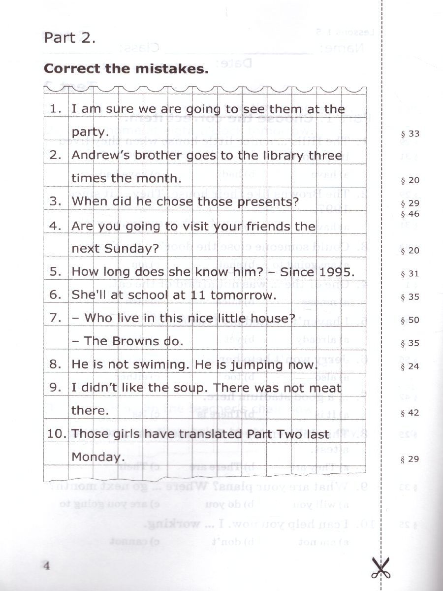 В пособие включены проверочные задания для контроля усвоения грамматического материала пятого класса. Проверка проводится в конце каждой четверти. Каждая работа имеет четыре варианта. Дома учащиеся готовятся к проверочной работе, просматривая все варианты. На уроке преподаватель сообщает, какой именно вариант следует сделать. Учащиеся выполняют задания, вырезают страницу из книжки и сдают ее на проверку. Если дома при подготовке возникнут сложности, то помочь детям смогут родители. Для этого рядом с каждым заданием указан номер соответствующего параграфа КНИГИ ДЛЯ РОДИТЕЛЕЙ. Проверочные работы можно использовать и в дидактических целях. Для учащихся, изучающих язык по учебнику И. Н. Верещагиной, О. В. Афанасьевой "Английский язык: V класс".Характеристики