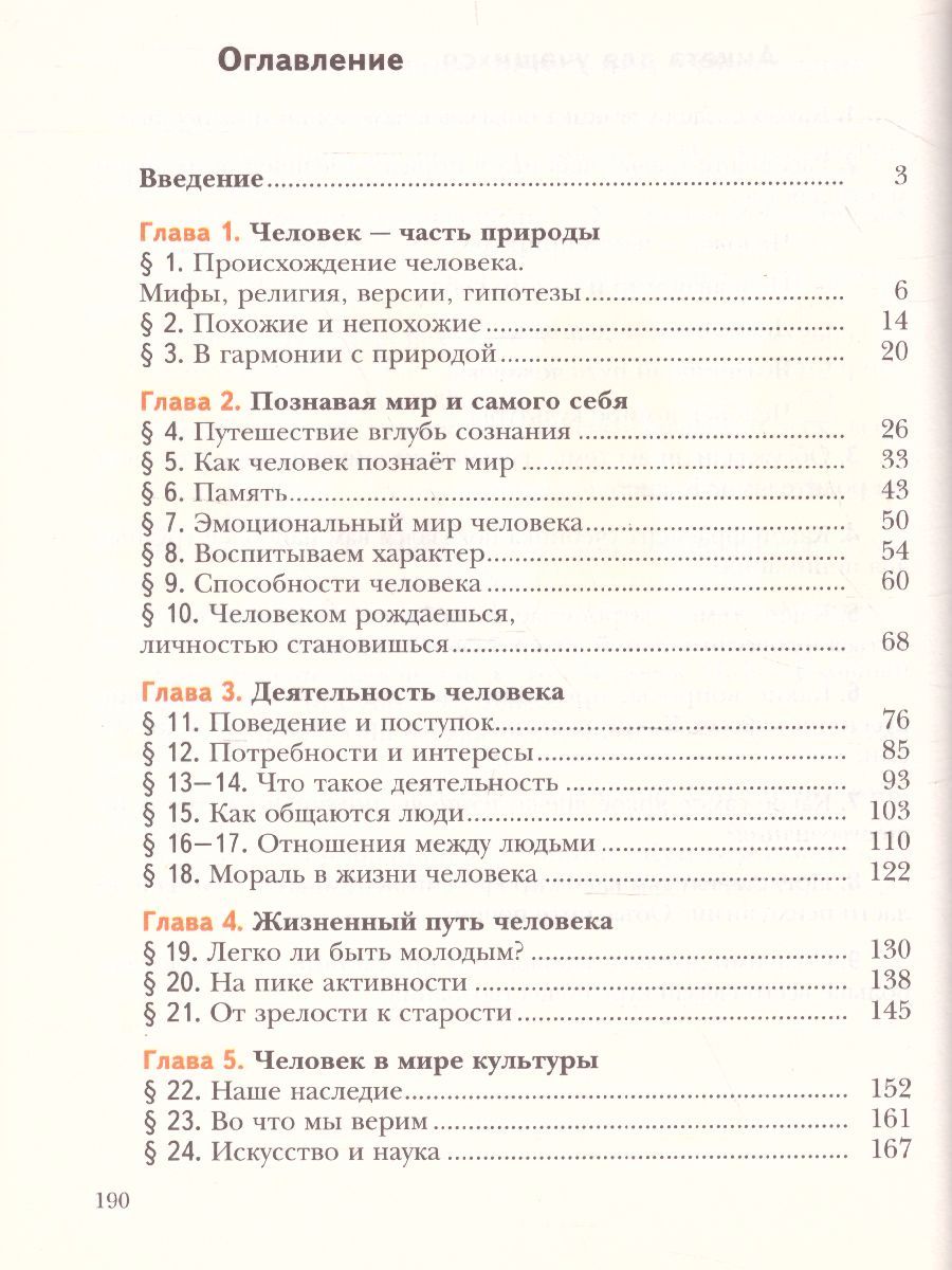 Данное издание, входящее в систему учебно-методических комплектов "Алгоритм успеха", продолжает единую линию учебной литературы по обществознанию для основной и средней школы. В учебнике в интересной и увлекательной форме освещается внутренний мир человека, его поведение в обществе, взаимоотношения с природой. Рассматриваются основы духовной культуры, вопросы сохранения и передачи духовных ценностей. Соответствует федеральному государственному стандарту основного общего образования (2010 г.)Характеристики