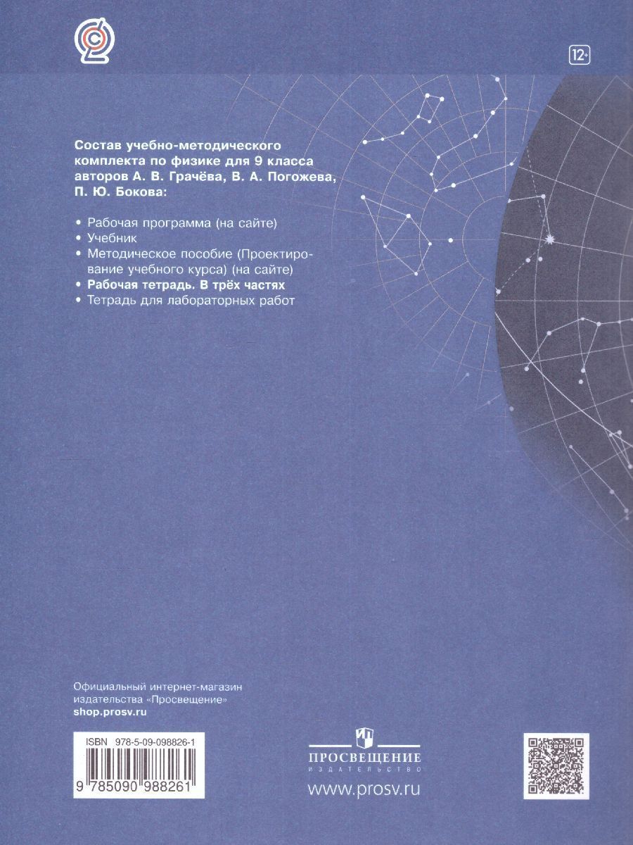 Рабочие тетради №1, 2 и 3 вместе с учебником, тетрадью для лабораторных работ, методическим пособием для учителя составляют учебно-методический комплект по физике для 9 класса общеобразовательных учреждений. В тетради № 1 представлены задания по темам "Кинематика", "Динамика", "Импульс. Закон сохранения импульса". Соответствует федеральному компоненту государственных образовательных стандартов основного общего образования (2004 г.)Характеристики