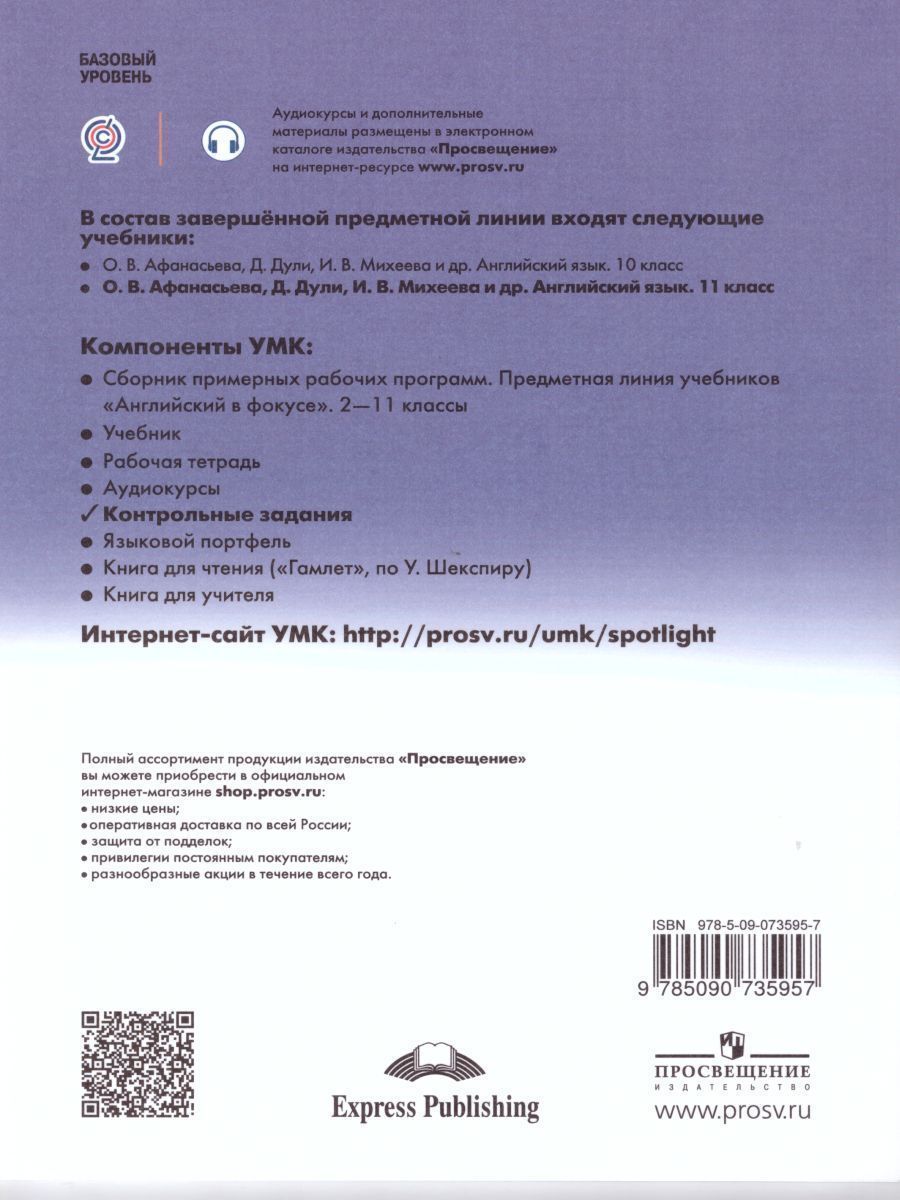 Английский в фокусе 11 класс. Spotlight. Контрольные задания