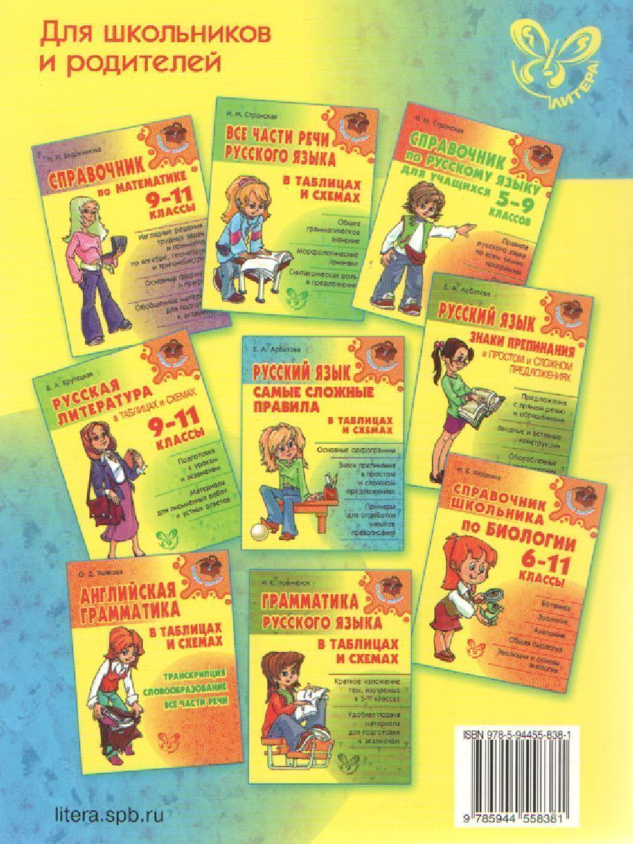Данное пособие очень удобно тем, что оно включает в себя все основные виды разбора слов и предложений, которые вы выполняете на уроках русского языка, а именно: 1) фонетический разбор; 2) разбор слова по составу; 3) словообразовательный разбор; 4) морфологический разбор; 5) синтаксический разбор; 6) орфографический разбор. В каждом из разделов, посвященных тому или иному виду разбора, приводятся необходимые теоретические сведения, план разбора, образцы разбора, а также практические задания для самостоятельной работы. В конце книги помещен раздел "Проверьте себя!", в котором приведены ответы ко всем заданиям упражнений.Характеристики