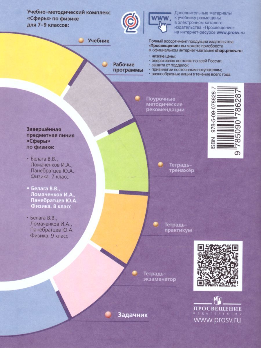 Задачник является составной частью учебно-методического комплекта «Физика» для 8 класса линии УМК «Сферы». В нём содержатся задачи по всем темам учебника 8 класса. Порядок задач соответствует структуре учебника. Задачи имеют три уровня сложности. Использование задачника позволит отработать навыки решения задач.Характеристики