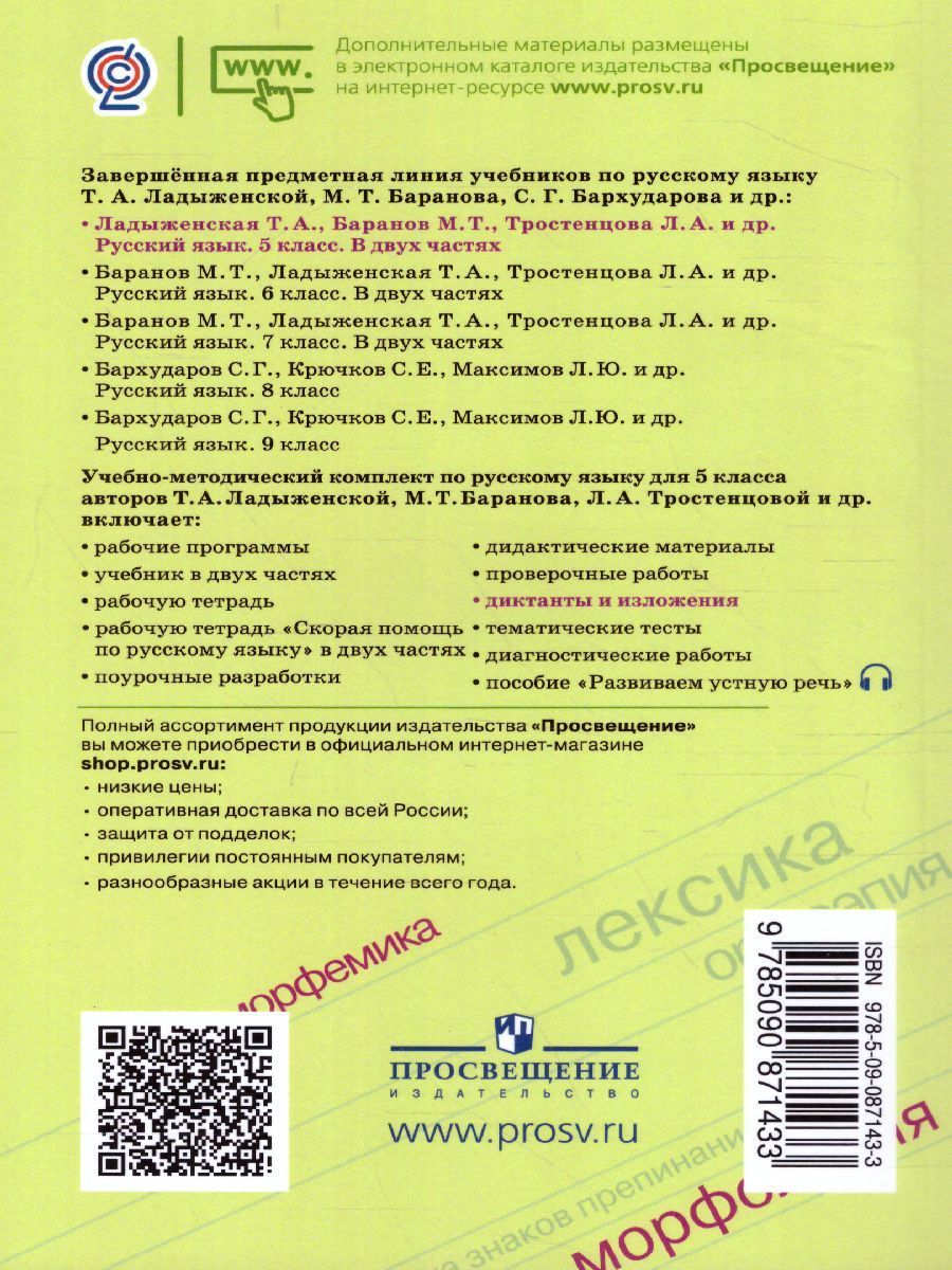 Русский язык 5 класс. Диктанты и изложения к учебнику Ладыженской Т.А.