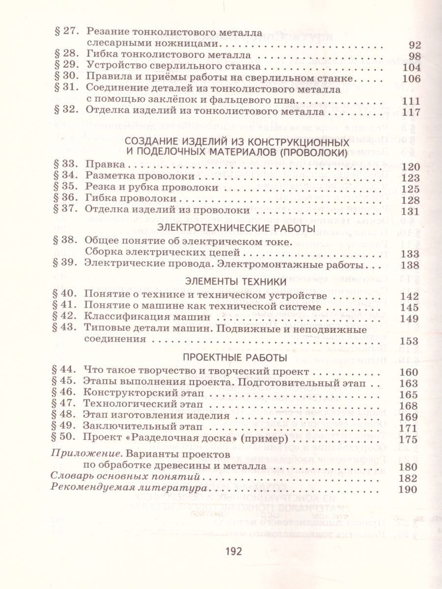 Учебник содержит сведения об основных свойствах древесины, металлов и пластмасс. В нем приводятся такие технологии обработки этих материалов, как пиление, строгание и сверление древесины, резание и гибка металла, изготовление изделий из проволоки. Дается понятие об электротехнических работах, элементах техники, творчестве и творческом проекте. Учебник одобрен Федеральным экспертным советом Министерства образования Российской Федерации. ФГОС.Характеристики