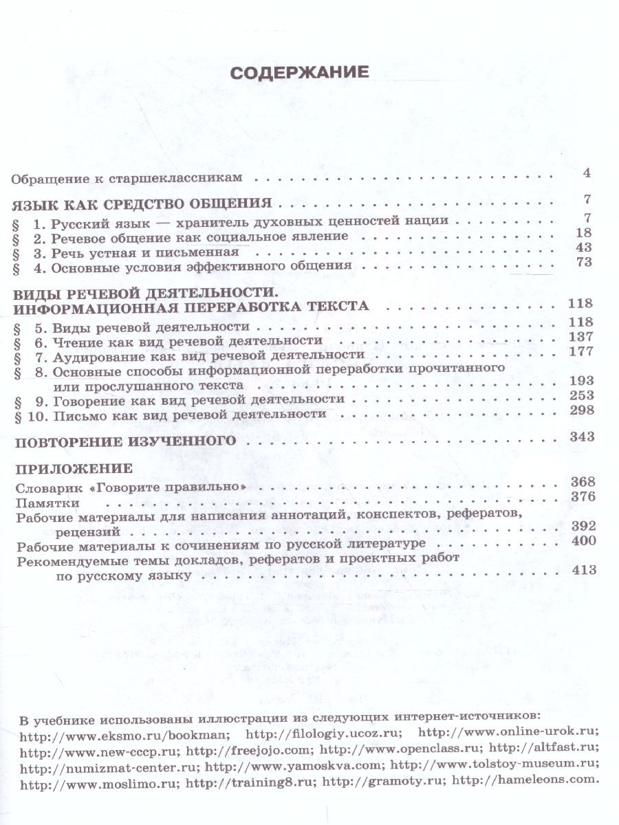 Учебник входит в УМК по русскому языку"для 10-11-го классов, который обеспечивает преемственность между разными ступенями школьного образования, являясь продолжением предметной линии для 5-9-го классов (авторы: С. И. Львова, В. В. Львов). Учебник отличается направленностью на интенсивное развитие речемыслительных способностей старшеклассников, совершенствование всех видов речевой деятельности, формирование функциональной грамотности, достижение метапредметных результатов обучения. Целенаправленное повторение и систематизация изученного ранее материала обеспечивает подготовку к ЕГЭ по предмету. Рекомендовано министерством просвещения Российской Федерации.Характеристики