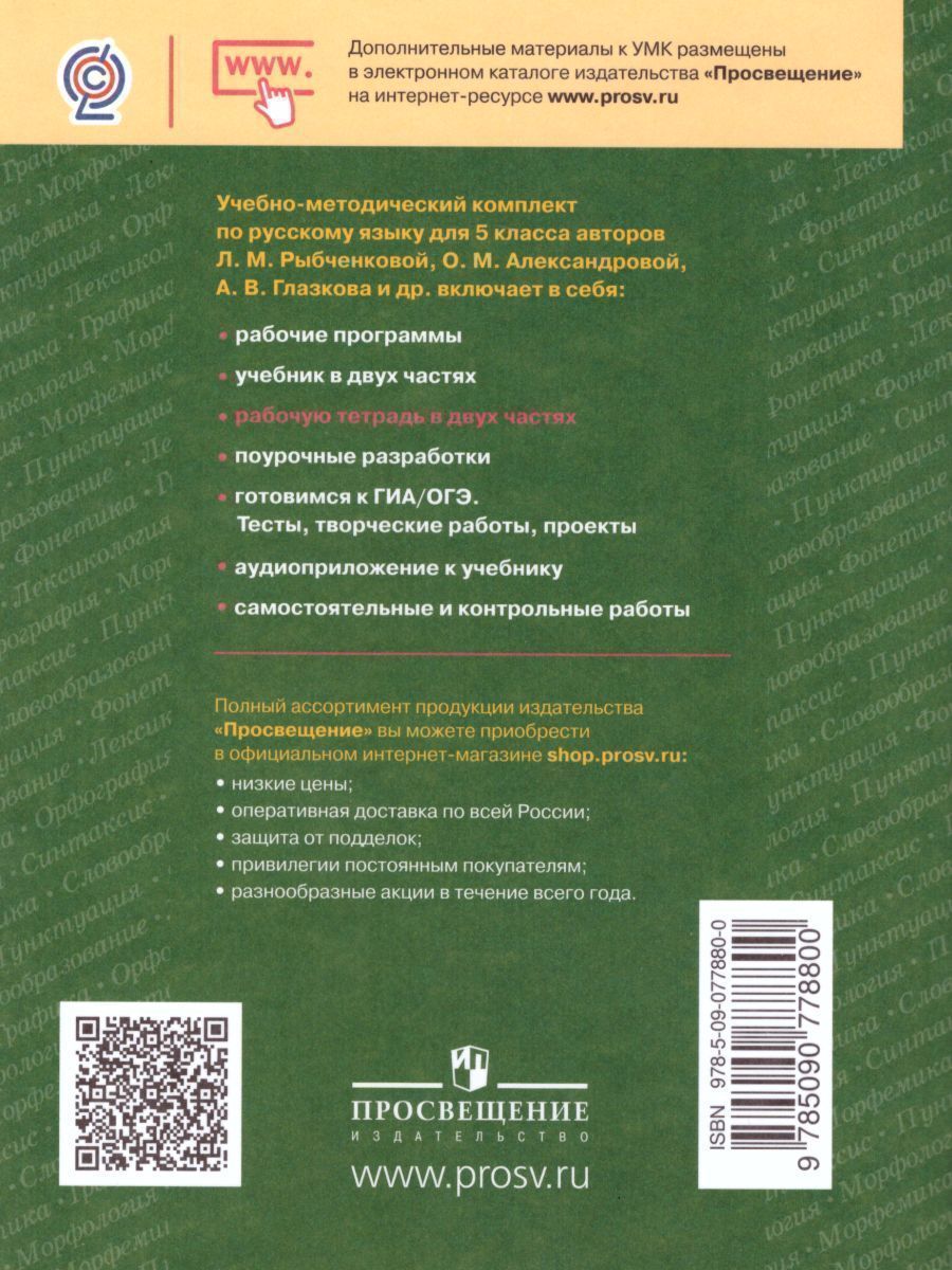 Русский язык 5 класс. Рабочая тетрадь. Часть 2. ФГОС