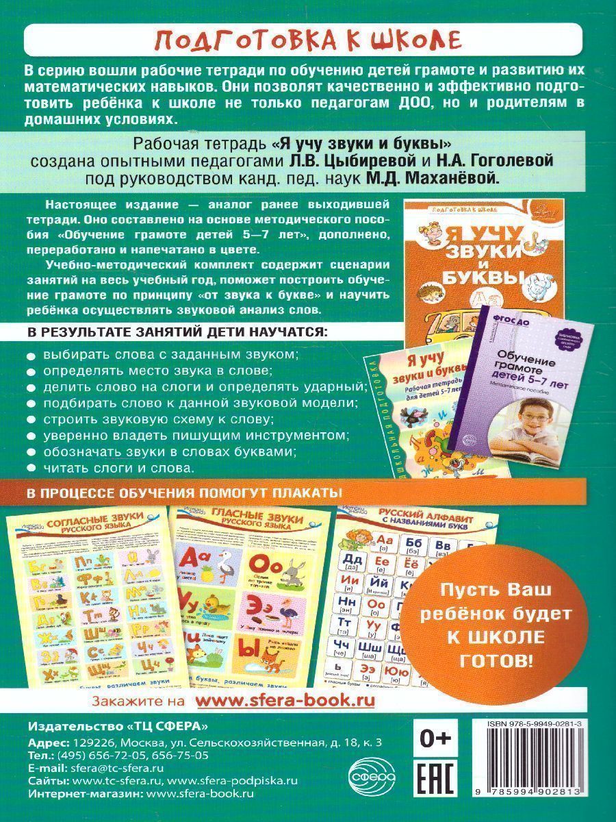 Представленные в тетради упражнения и задания помогут подготовить ребенка к обучению грамоте в школе. Все задания построены по принципу постепенного усложнения. Выполняя их, дети учатся читать слоги, определять количество слогов в слове, делать простейший звуковой анализ слов. По каждой теме предлагаются задания на подготовку руки к письму. Рабочая тетрадь может быть использована как на занятиях по обучению грамоте, так и для индивидуальной работы с ребенком в нерегламентированное время дома и дополняется методическим пособием Подготовка к обучению грамоте детей 5-7 лет. Рабочая тетрадь и методическое пособие адресованы воспитателям ДОО, родителям, гувернерам - всем, кто готовит детей к школе.Характеристики