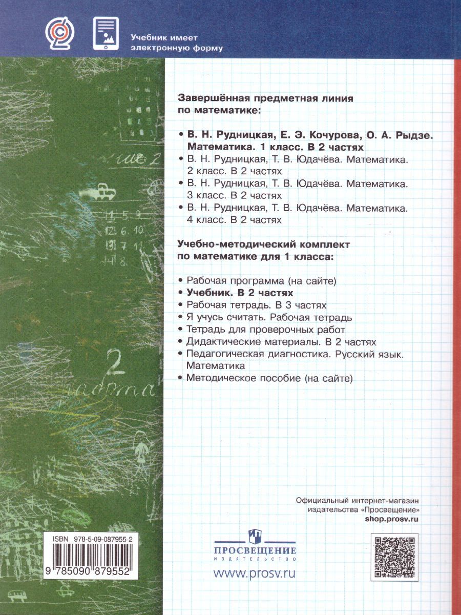 Учебник предназначен для обучения математике учащихся в первом полугодии 1 класса. Он обеспечивает плавную адаптацию детей к обучению, способствует формированию универсальных учебных действий работать по инструкции, образцу, находить и объяснять способ решения, составлять модель сюжетной математической ситуации. Учебник используется в комплекте с двумя рабочими тетрадями (автор Е.Э. Кочурова) и приложением «Разрезной материал». Соответствует федеральному государственному образовательному стандарту начального общего образования (2009 г.).Характеристики