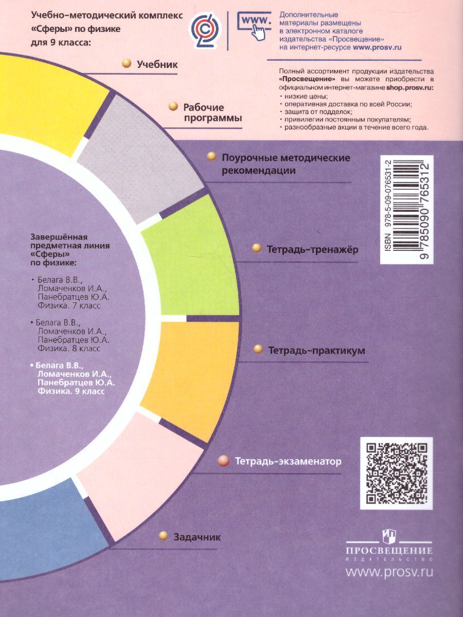 Тетрадь-экзаменатор является составной частью учебно-методических комплектов «Физика. 9 класс» линии «Сферы». Пособие предназначено для проверки результатов обучения по курсу физики 9 класса в соответствии с требованиями образовательного стандарта. В пособие включены проверочные работы в форме тестовых заданий, аналогичных заданиям ЕГЭ, и работы в форме вопросов. В конце пособия приведён перечень возможных тем рефератов и творческих работ.Характеристики