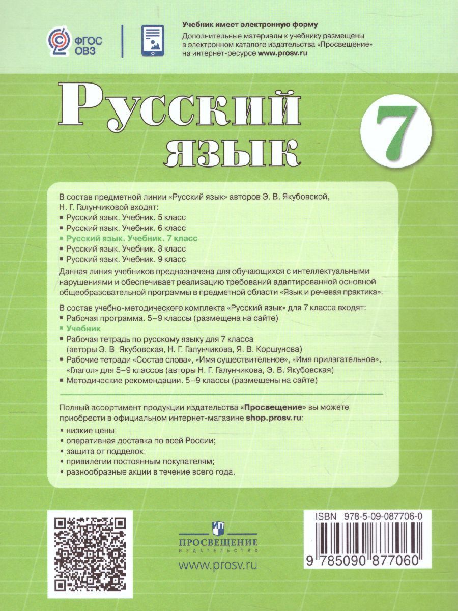 Русский язык 7 класс. Учебник. Для специальных (коррекционных) образовательных учреждений VIII вида