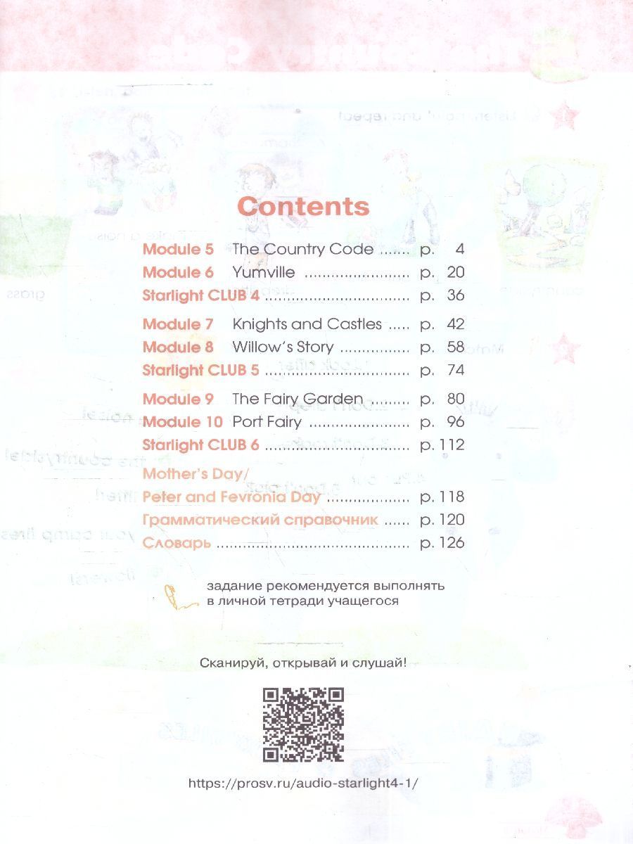 Учебник (Student’s Book) является основным компонентом УМК «Звёздный английский» и предназначен для учащихся 4 класса общеобразовательных учреждений и школ с углублённым изучением английского языка. Учебник включает тексты и задания про русскую культуру, содержит упражнения на формирование общеучебных навыков и умений, предоставляет возможность для дифференцированного подхода к деятельности учащихся, имеет воспитательную и развивающую ценность материалов, широкие возможности для социализации учащихся. Учебник получил положительные заключения РАО и РАН на соответствие федеральному компоненту государственного образовательного стандарта начального общего образования по иностранным языкам и федеральному государственному образовательному стандарту начального общего образования.Характеристики