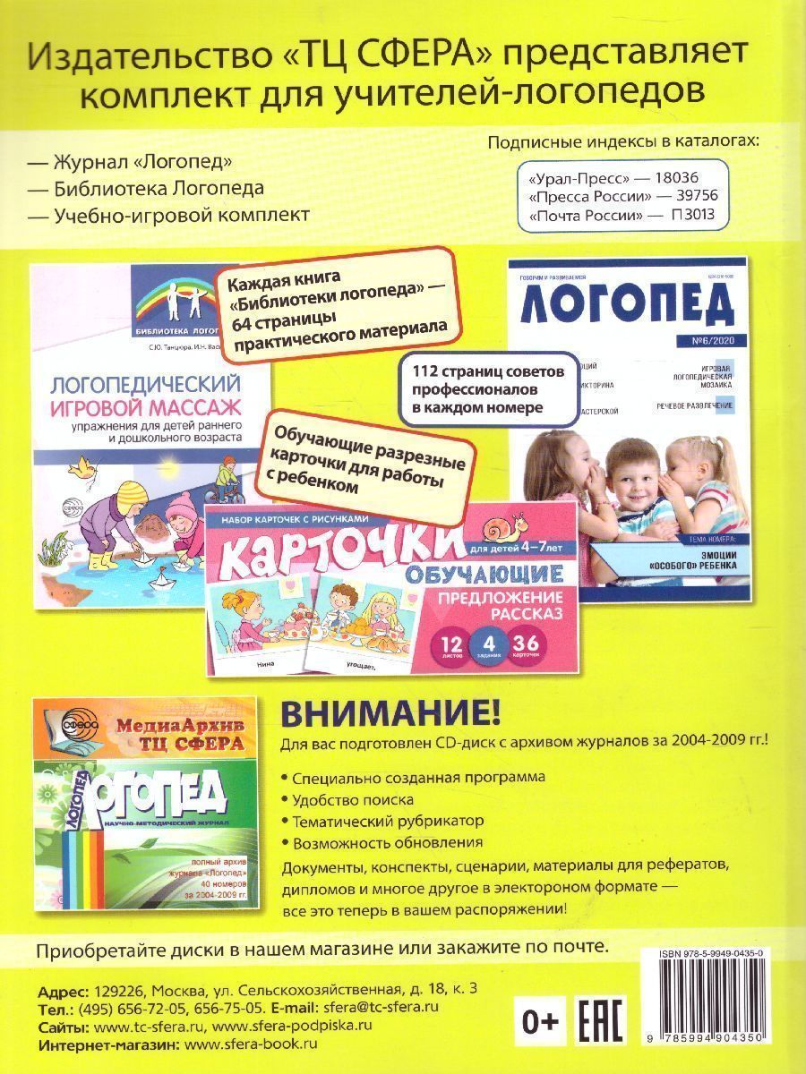 Новая версия рабочего журнала по сравнению с предыдущим изданием переработана и дополнена с учетом требований ФГОС дошкольного образования к содержанию и формам организации деятельности учителя-логопеда дошкольной образовательной организации. В то же время в нем сохранено стремление автора-составителя предложить специалистам в области диагностики, коррекции и профилактики недостатков развития речи у дошкольников компактное и удобное в использовании методическое пособие, избавляющее их от многочисленных форм отчетности о ходе и результатах своей работы. Журнал адресован учителям-логопедам и будет помощником-органайзером учителя-логопеда независимо от того, в какой организации и в каких условиях он работает - в группе общеразвивающей, коррекционной или компенсирующей направленности ДОО, в центре психолого-педагогической и медико-социальной помощи или в службе ранней помощи детям с ограниченными возможностями здоровья.Характеристики