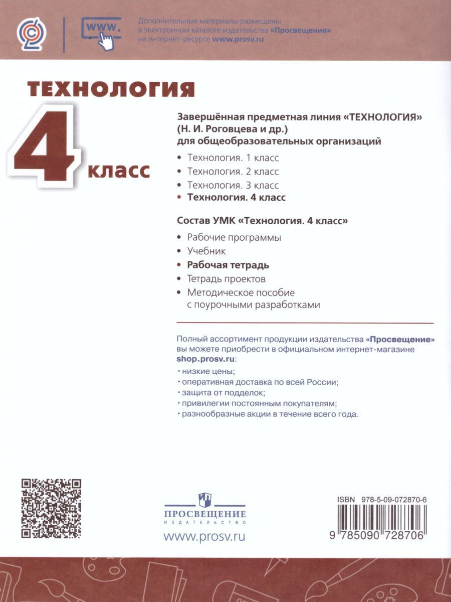 Линия УМК Роговцевой Н. И. Технология («Перспектива») Тетрадь предназначена для организации не только урочной, но и внеурочной деятельности. «Тетрадь проектов» поможет начинающим волшебникам превратить старые ненужные вещи в необычные украшения для дома. Юные затейники научатся конструировать игрушки и настольные игры. Пособие даст возможность попробовать себя в роли журналиста, дизайнера, полиграфиста, подскажет, как использовать современные компьютерные технологии для создания своей стенгазеты. В процессе работы школьники смогут закрепить и расширить практические навыки, полученные на уроках технологии, а также знания о свойствах материалов и инструментов. Подходит к любому учебнику по технологии.Характеристики