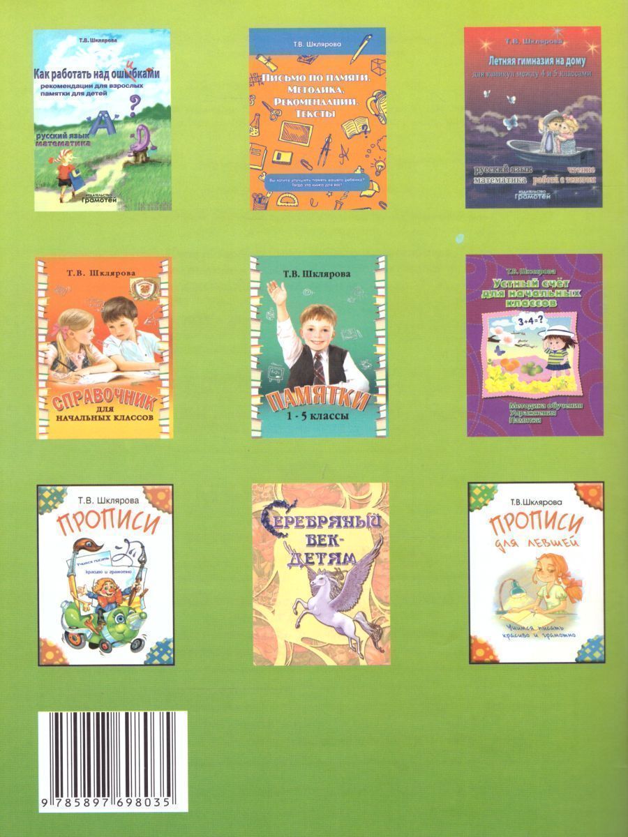 Процесс обучения ребенка длителен и труден. В начале этого длинного пути вырабатывается умение работать с книгой, со справочным материалом, закладываются основы для развития орфографической зоркости. После каждой темы даны теоретические и практические вопросы и задания для обобщения и систематизации знаний. Эти пособия предназначены для работы в классе и дома: их можно использовать и как сборники упражнений, и как рабочие тетради. В летнее время сборники помогут родителям лекго подобрать необходимый материал для повторения изученного в школе. Они включают большое количество слов, предложений, текстов, диктантов, насыщенных теми орфограммами, которые нуждаются в серьезной отработке. Удобны эти пособия и для школьных логопедов. Цель данных сборников — дать учителям и родителям разнообразный материал по выработке твердых навыков грамотного письма.Характеристики