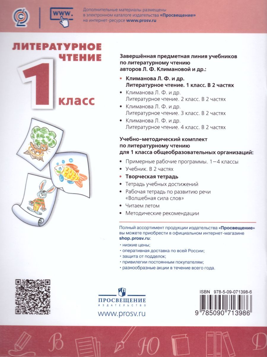 Творческая тетрадь дополняет учебник «Литературное чтение. 2 класс», доработанный в соответствии с требованиями Федерального государственного образовательного стандарта начального общего образования. Творческие задания помогают детям закреплять изученный материал по чтению и письму, развивать воображение. В учебное пособие впервые введена рубрика «Мастерская писателя», в которой дети вместе с профессиональным писателем получат первый опыт создания литературных произведений. Ученики узнают, как поэт переводит и сочиняет стихи, попробуют самостоятельно составить сказки, загадки, поставят спектакль. С помощью этой тетради школьники будут учиться размышлять над прочитанным и давать свою оценку произведению. Такой подход способствует развитию творческих способностей, лучшему пониманию прочитанного и прививает любовь к чтению.Характеристики