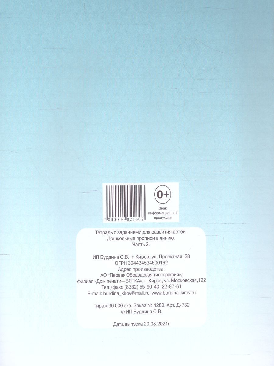 Дошкольные прописи в линию. Рабочая тетрадь. В 2-х частях. Часть 2