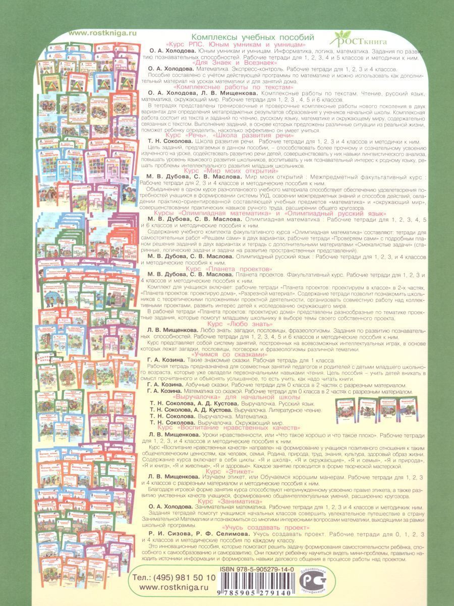 Рабочие тетради курса "Учусь создавать проект" для начальной школы - это инновационные пособия, которые помогают решить задачу формирования самостоятельности ребёнка, способного к самообразованию и саморазвитию. Они помогут ребёнку научиться видеть мини-проблемы, правильно находить источники информации и формировать навыки делового общения в процессе работы над проектом. Пособие соответствует федеральному государственному образовательному стандарту начального общего образования (ФГОС второго поколения). Предлагаемая рабочая тетрадь адресована учащимся первых классов. Педагоги могут использовать её во внеурочной и внеклассной деятельности, а родители-консультанты - во время создания проекта. Поможет им в этом методическое пособие.Характеристики
