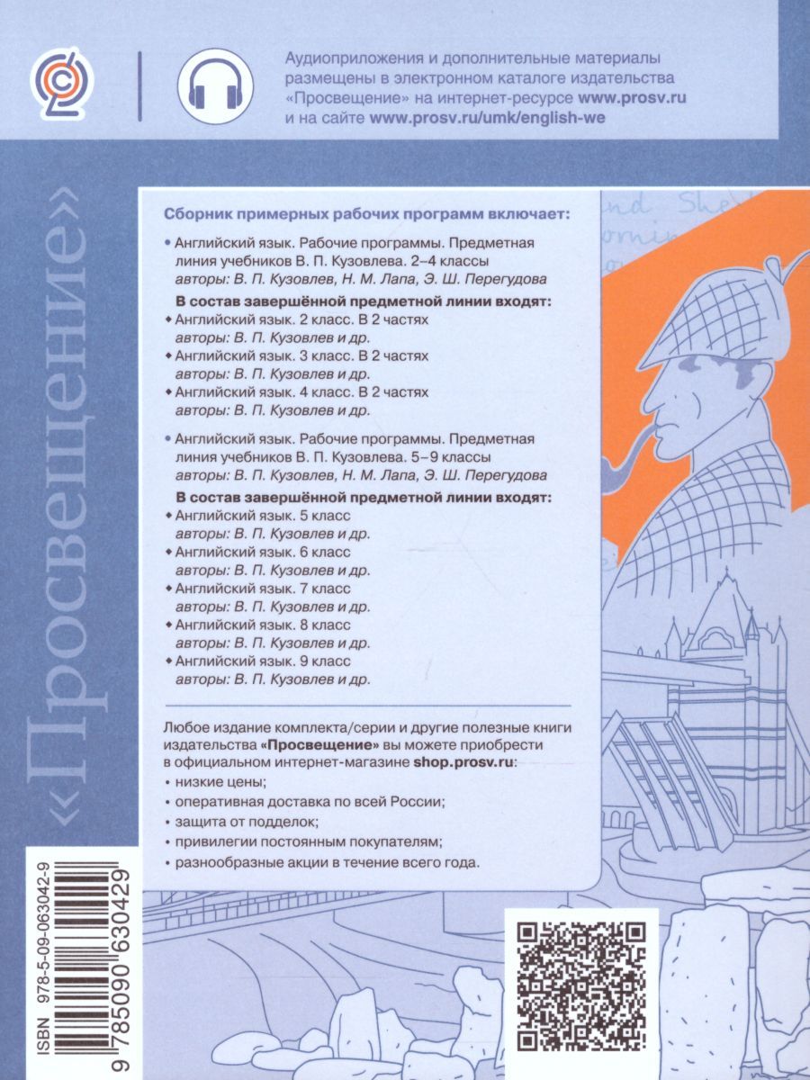 Данный сборник предназначен для учителей, преподающих английский язык во 2–9 классах общеобразовательных организаций. В сборник вошли следующие рабочие программы: «Английский язык. Рабочие программы. Предметная линия учебников В. П. Кузовлева. 2-4 классы» и «Английский язык. Рабочие программы. Предметная линия учебников В. П. Кузовлева. 5-9 классы». Программы соответствуют требованиям Федерального государственного образовательного стандарта начального общего образования и Федерального государственного образовательного стандарта основного общего образования, содержат описание целей обучения, личностных, метапредметных и предметных результатов освоения, характеристики учебного курса, а также тематическое планирование. Рабочие программы призваны помочь учителю в организации образовательного процесса обучения английскому языку.Характеристики