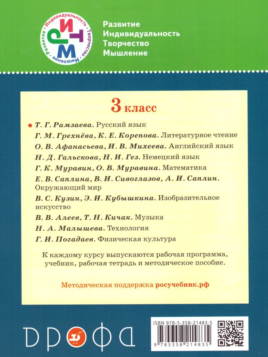 Система расположения материала в тетради и его содержание соответствуют рабочей программе и учебнику "Русский язык. 3 класс".Учебник соответствует Федеральному государственному образовательному стандарту начального общего образования, рекомендован Министерством образования и науки Российской Федерации, включён в Федеральный перечень.Характеристики